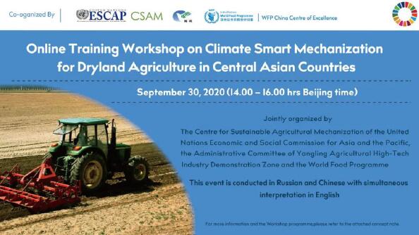 An Online Training Workshop on Climate Smart Mechanization for Dryland Agriculture in Central Asian Countries organized by ESCAP- CSAM, Administrative Committee of Yangling Agricultural High-tech Industry Zone of China and WFP China COE on September 30, 2020.