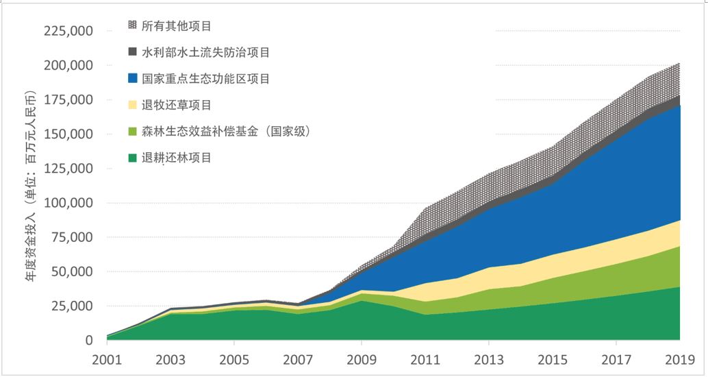 Figure 1: Annual investments by China's eco-compensation programs have grown rapidly.