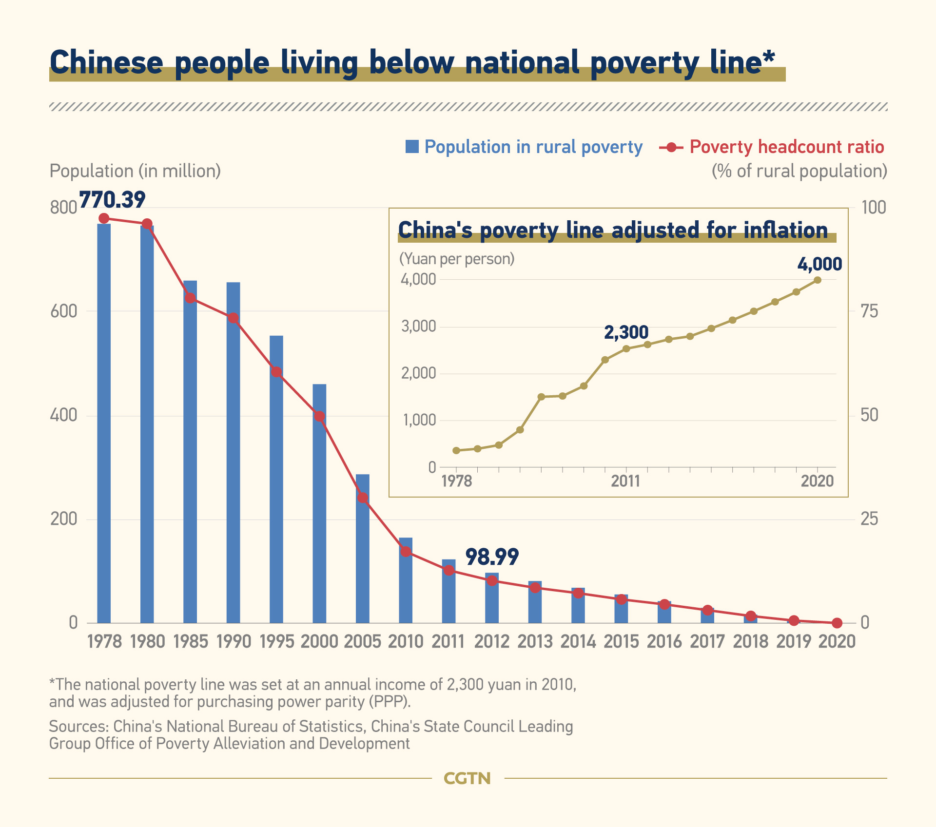 A decisive victory was pocketed in the fight against poverty, Tang noted. Under the current standards, all the impoverished people in rural areas were lifted out of poverty and 832 registered poverty-stricken counties shook off poverty, eliminating absolute poverty and region-wide poverty.