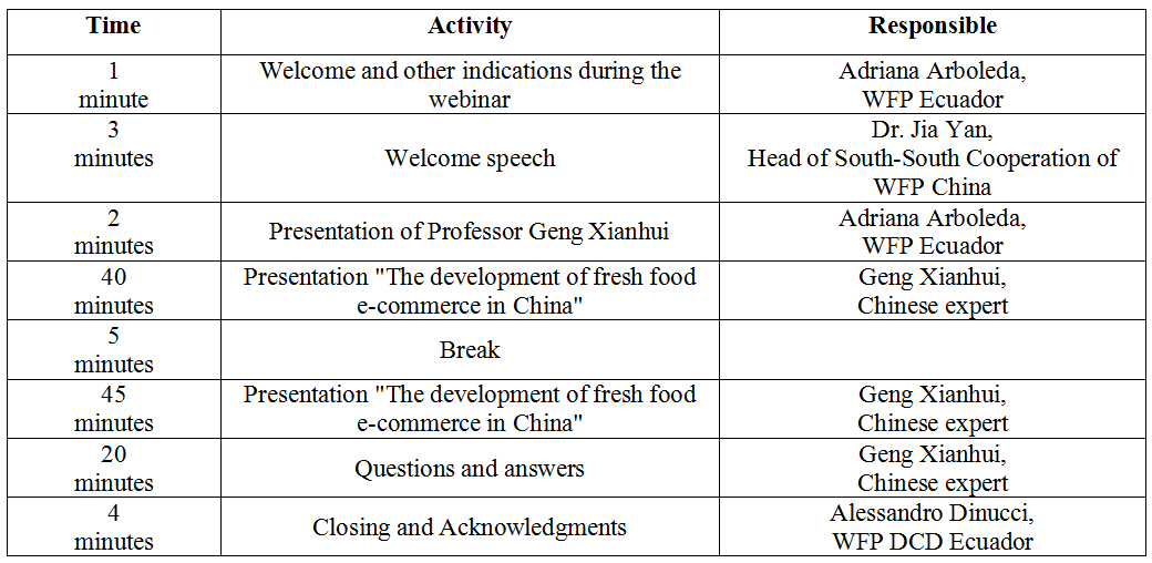 The webinar will be co-organized by WFP CO of Ecuador, WFP China COE, WFP Regional Bureaux in Panama.