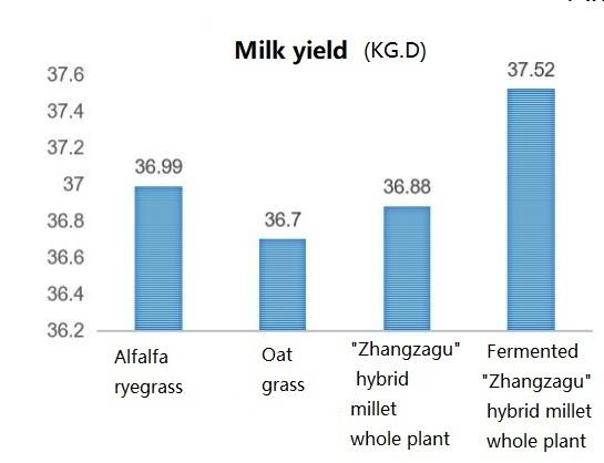 Taking dairy cow feeding as an example, replacing 50% of ryegrass with fermented "Zhangzagu" yields an additional 2.31 yuan/cow/day (US$0.36/cow/day), replacing 30% alfalfa earns 6.57 yuan/cow/day (US$1.02/cow/day), and substituting 20% corn results in 3.55 yuan/cow/day (US$0.55/cow/day). Taking fattening sheep feeding as an example, substituting 40% of corn stover with millet increases the weight by 7.27% and the survival rate by 7.14%.