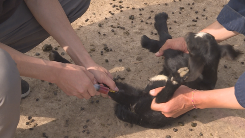 Black goat farmers vaccinate a kid.