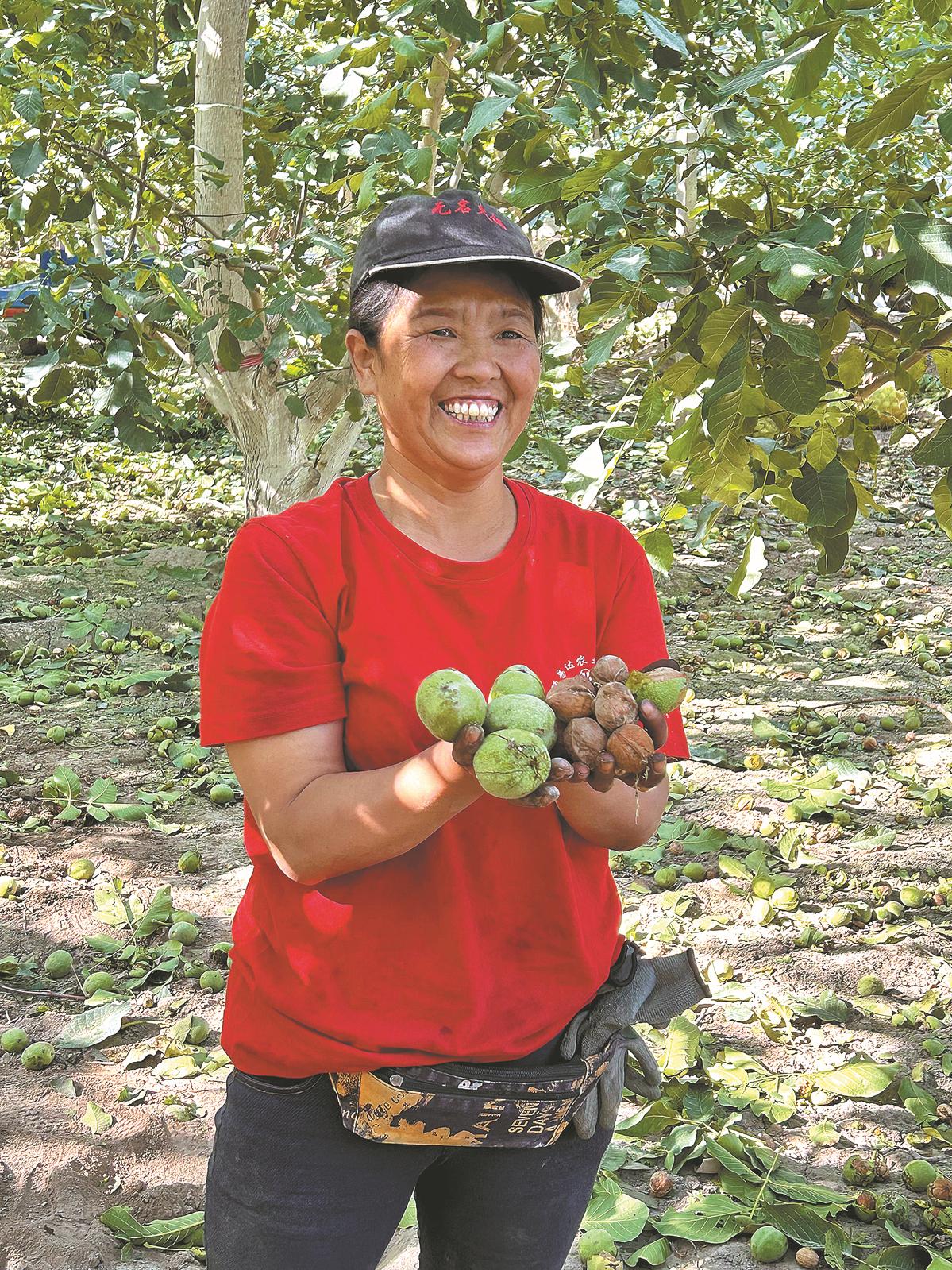 Zhong Minglun's wife shows newly harvested walnuts. CHENG SI/CHINA DAILY