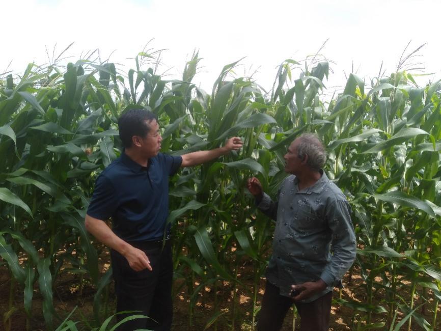 Dr. Zhang Zhongjie and a maize grower in the project area